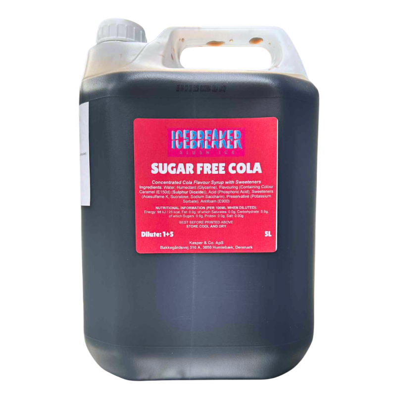 Ingredienser: Vand, fugtighedsbevarende middel (glycerin), aroma (indeholder farvestof karamel (E150d) (svovldioxid)), syre (fosforsyre), sødestoffer (acesulfam K, sucralose, natriumsaccharin), konserveringsmiddel (kaliumsorbat), skumdæmper (E900).