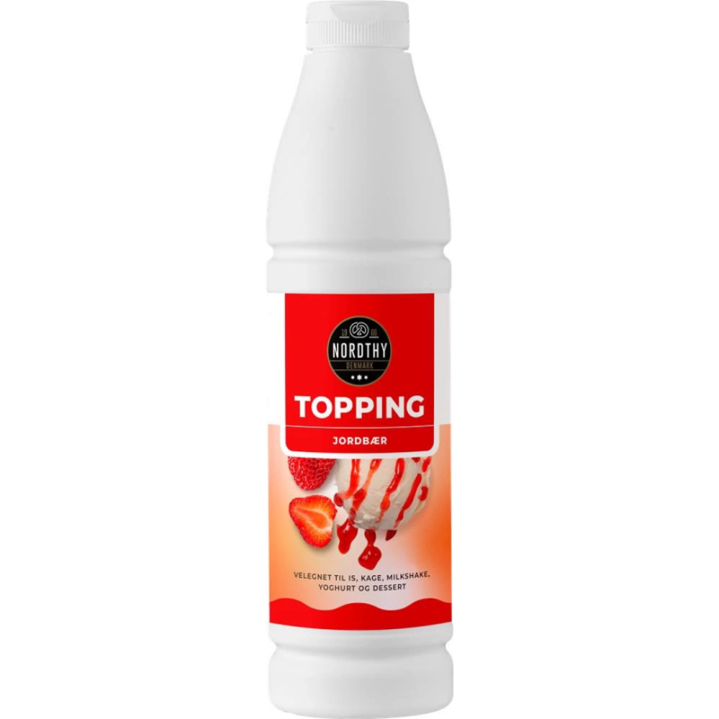 Glukosesirup, sukker, 10% jordbær, vand, stabilisatorer (E407, E440), syre (E330), farvestof (E161b), farvegivende koncentrat (sort gulerod), surhedsregulerende middel (E331), konserveringsmiddel (E202), jordbæraroma.
